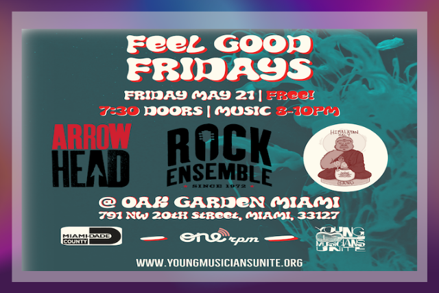 Join us on Friday, May 21st for a rocking performance from YMU partner band: The Miami Beach Senior High Rock Ensemble! This event will be outdoors and free of charge. We hope to see you there! Performers: - MBSH Rock Ensemble - Himalayan Salt Band - Arrowhead