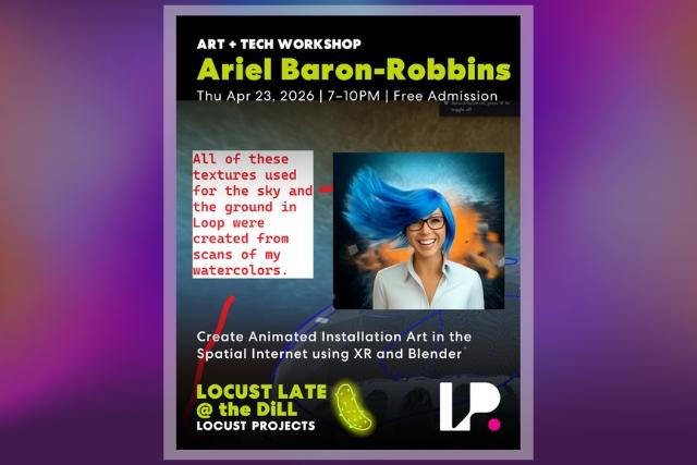 Technologist, educator, and Loop Art Critique founder Ariel Baron-Robbins will guide participants through the process of transforming handmade artwork into an immersive digital space by using digital scanning, Blender—an open source 3D modeling software—and XR environments. This hands-on workshop allows participants to build animated installations, experiment with interactive software, and learn to translate creative ideas into dynamic digital environments, with the final collaborative results transported for experience both online and in VR within the MUDVERSE by MUD Foundation.