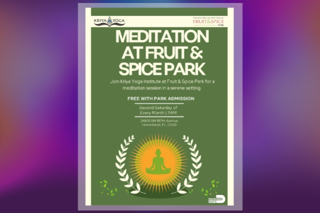 The teachings on cultivating inner peace and serving others are heightened in the serene, one-of-a-kind atmosphere of Fruit & Spice Park. Surrounded by the energy of its rare and vibrant plant collection, meditation here is enriched by the park's tranquil character and its deep connection to the natural world.