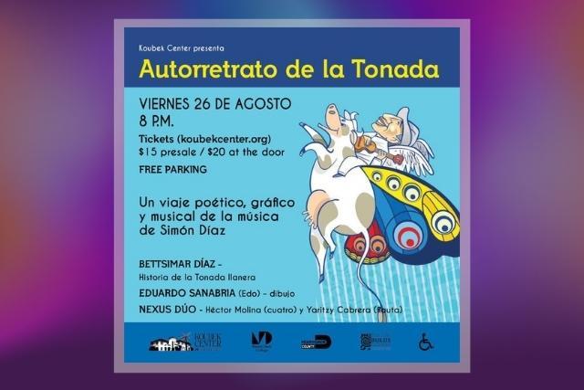 Self-portrait of La Tonada is a poetic, graphical and musical journey of the music of the iconic Venezuelan artist, Simón Díaz, and an exploration of one of the essential genres of Venezuelan traditional music: the tonada. A wonderful experience where Bettsimar Díaz will introduce the audience to this unique musical style, Eduardo Sanabria (Edo) will be transforming words into images live, and Nexus Dúo, comprised of Héctor Molina and Yaritzy Cabrera, will interpret the most memorable melodies of the great Simón Díaz.