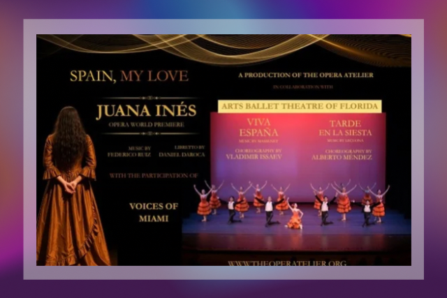 The Opera Atelier joins forces with Arts Ballet Theatre of Florida to present Spain, My Love: Opera Meets Ballet, a celebration of Spanish heritage. The double bill opens with the world premiere of Juana Inés, a one-act opera about Sor Juana Inés de la Cruz- the leading intellectual of the Spanish Colonial period, as she seeks to reconcile her faith and her pursuit of knowledge. The opera, with libretto by Daniel Daroca and music by Venezuelan composer Federico Ruiz, is presented with the participation of Voices of Miami.