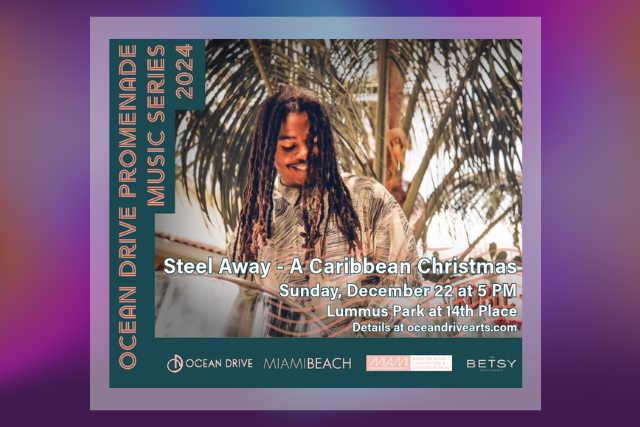 Gather oceanside for an open air concert featuring "Steel Away" with steel drummer Kobie Alleyne, on Sunday, December 22nd at the Ocean Drive Promenade Music Series, a free weekly concert series presented by the Ocean Drive Association. Pack a picnic blanket or lawn chair to stake out your seat on the lawn. Showtime is at 5:00 PM